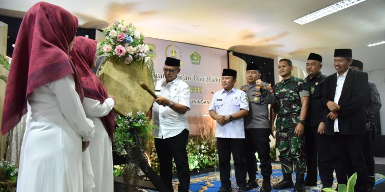 JABAROKE.COM– Terciptanya Generasi Qur’ani yang Handal dan Berprestasi Menuju Terwujudnya Kuningan Maju menjadi tema Tilawatil Qur’an dan Hadist (STQH) ke 48 tingkat Kabupaten Kuningan Tahun 2023. Acara tersebut dibuka Bupati Kuningan H. Acep Purnama, SH., MH, bertempat di Aula Islamic Center Kuningan (KIC). Rabu (08/03/2023).